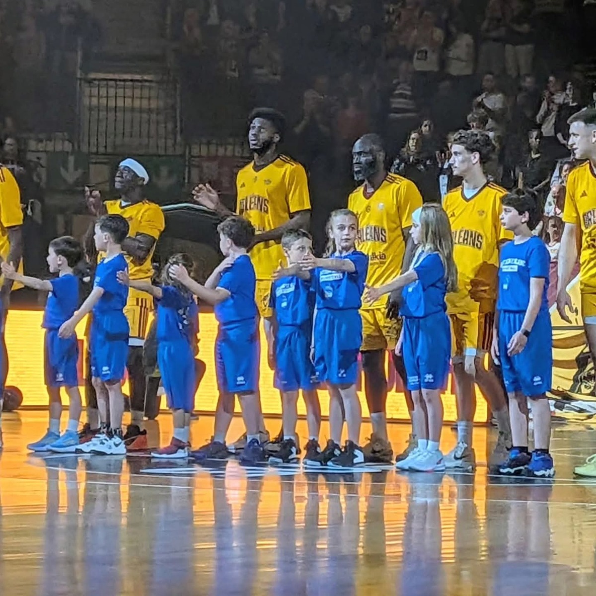 Nos petits basketteurs ont eu la chance d’entrer sur le terrain avec les joueurs.